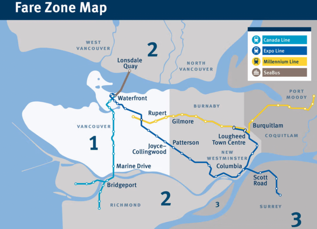 バンクーバーの運賃は エリア(Zone)ごと に分かれています。